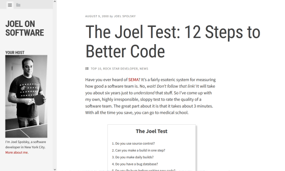 ◆1: “The Joel Test: 12 Steps to Better Code” by Joel Spolsky