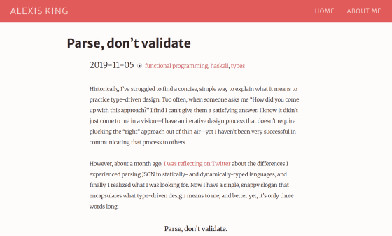 The essay explains that when validating data using Haskell 's type system, it is necessary to convert it to a new type. For example, in a system for registering usernames for an app, a malicious user could embed malicious code in the username field or embed a string of billions of characters, exhausting server resources. Converting data using functions can protect against such malicious activity. Lynch commented, 'This essay made me realize how useful compiler features can be in improving the security and reliability of applications.'