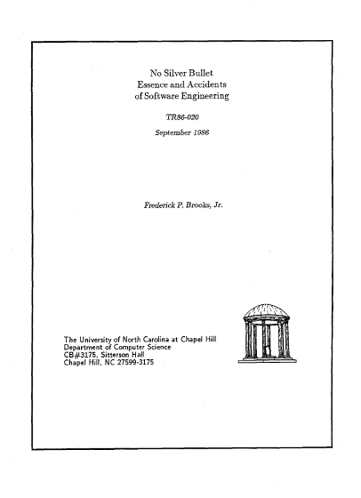 (PDF file) ◆3: “No Silver Bullet - Essence and Accident in Software Engineering” by Fred Brooks