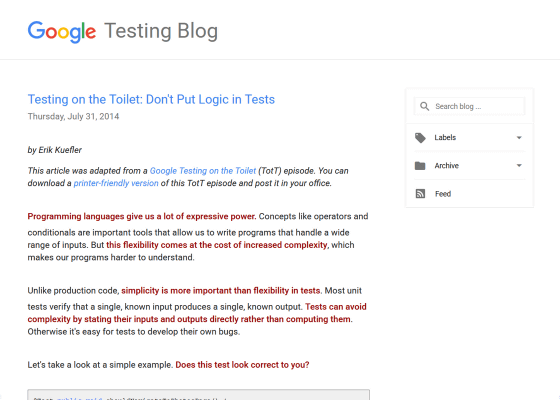 6. “Don't Put Logic in Tests” by Erik Kuefler