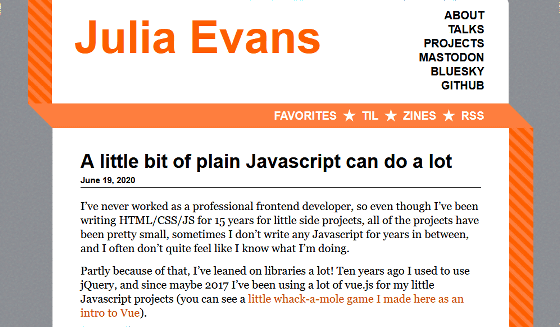 7. “A little bit of plain Javascript can do a lot” by Julia Evans