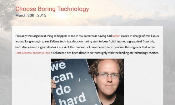 Lynch says he has never actually read the essay, only seen it quoted. However, he found the essay's ideas so intuitive that he didn't need to read it. McKinley's argument is that 'when starting a new project, it's tempting to use the latest cutting-edge technology, but new technology has bugs and weaknesses, and when you encounter them, you get stuck.' On the other hand, while well-used technology may be boring, it reduces the risk of getting stuck during development because solutions already exist for various problems you may encounter.
