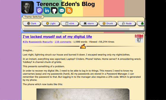 Eden is a writer who has written about a wide range of technology topics, but Lynch said he was particularly impressed by this essay, in which he posed a thought experiment: 'What would happen if lightning struck your house and destroyed all your possessions?' He concluded that if you lost access to your password manager, which stores all your passwords, you would be powerless.