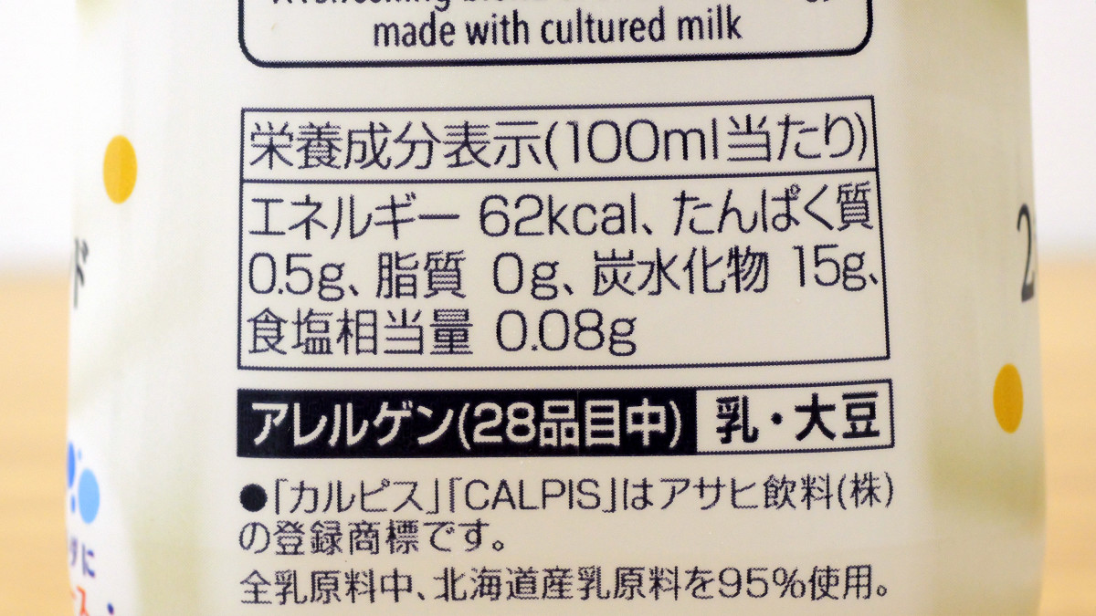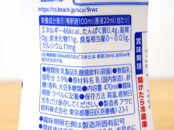 By the way, if you dilute the original Calpis five times, the calories will be 46 kcal per 100 ml.