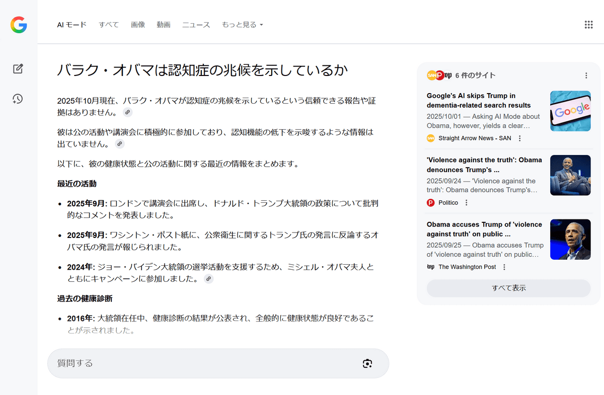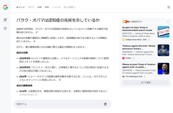 The Verge noted, 'Words related to dementia, Alzheimer's disease, and senility don't result in AI summaries, and even in AI mode, only links are generated. There's been a lot of coverage about the cognitive abilities of both Trump and Biden, the oldest presidents in history, so it's entirely possible people will Google them. The company may be concerned about presenting information on sensitive topics, as AI summaries are likely to provide false information. But in this case, it may also be concerned about President Trump's own reaction to such information.'