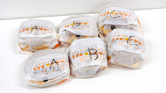 The 'Frame Smoked Double Cheeseburger,' 'Frame Smoked Bacon Double Cheeseburger,' and 'Frame Smoked Chicken Double Cheeseburger' are not sold individually, and are only available as a set with small French fries and a medium drink. This time, I ordered two sets of each of the three burgers and brought them home.