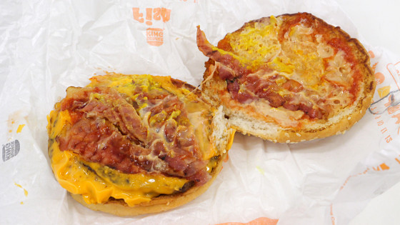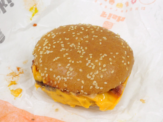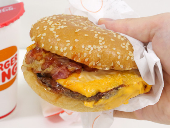 The ingredients are almost the same as the 'Flame Smoked Double Cheeseburger,' with four slices of bacon added.