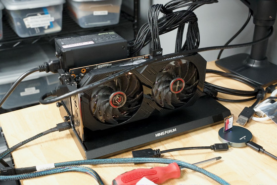 Gearing installed a graphics card equipped with an AMD GPU 'RX 6500 XT' in the DEG1 and connected it to the Raspberry Pi 500+. However, although he was able to get the graphics card's fan to spin, he was unable to get the OS to recognize the graphics card.