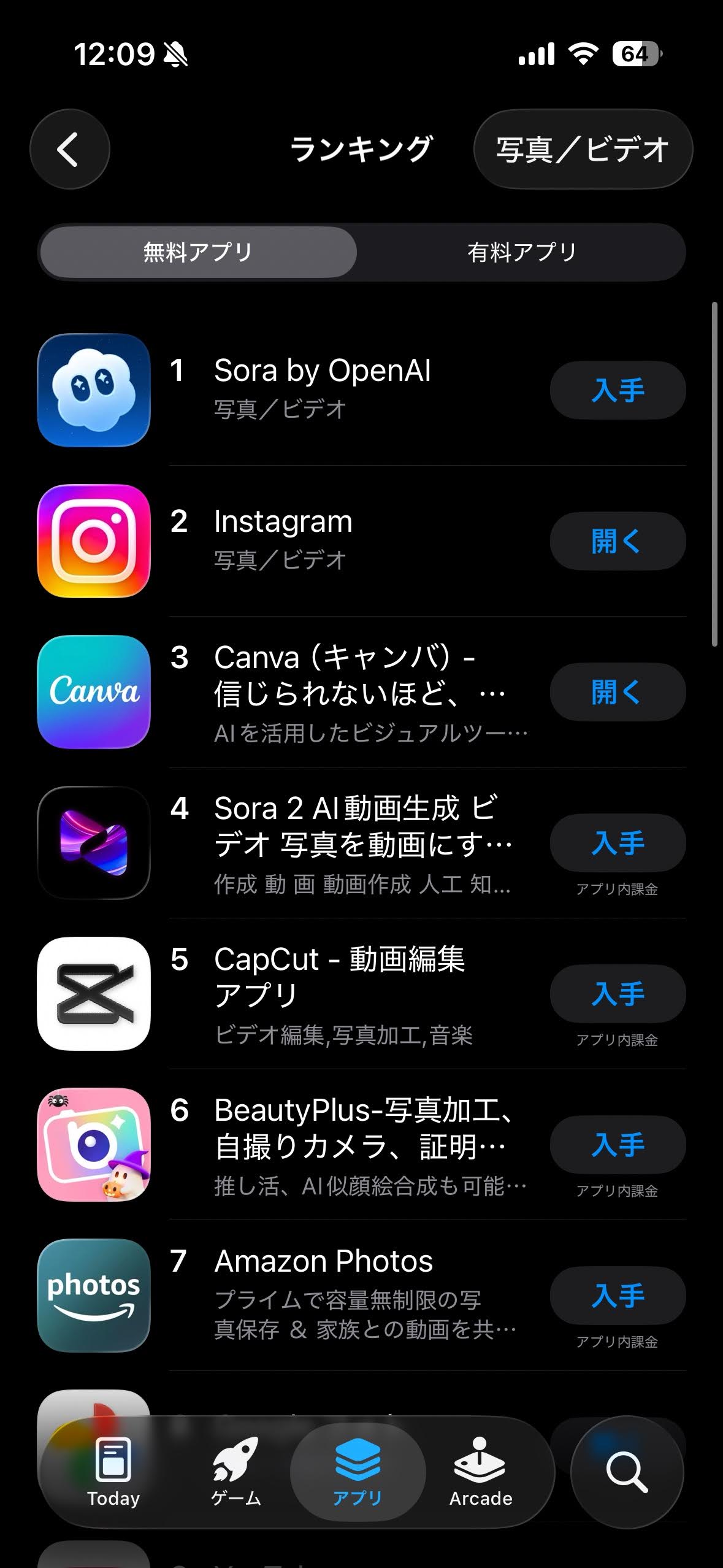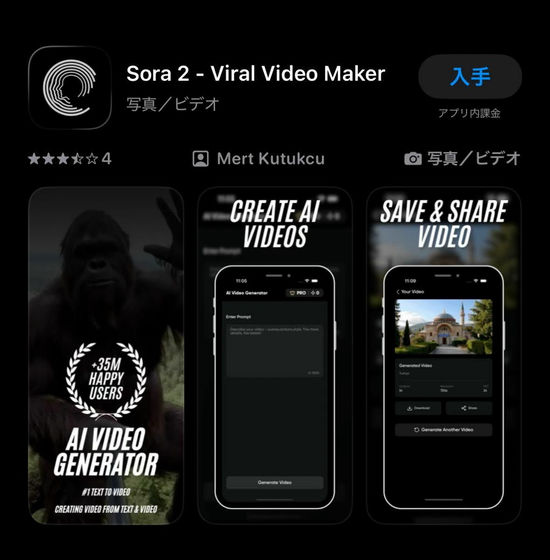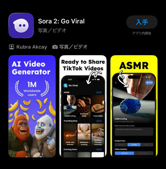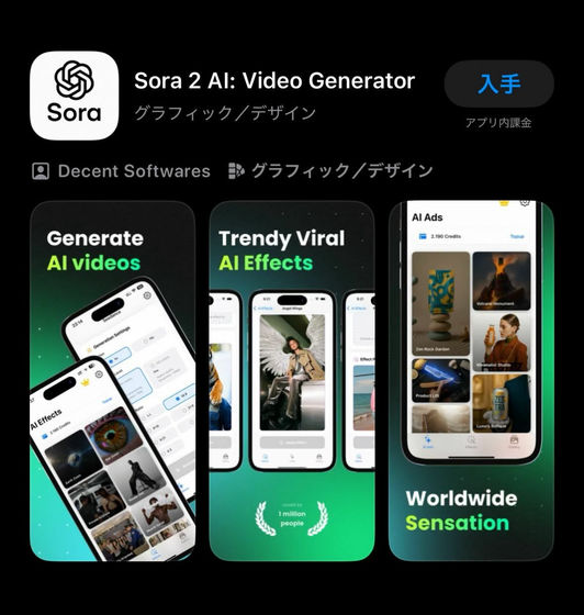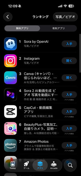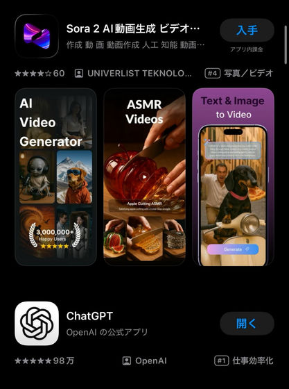 9to5Mac reports that 'Sora 2: AI Video Generator' is ranked 9th in the 'Photo & Video' category on the App Store, but in the Japanese App Store it was ranked 4th in the 'Photo & Video' category.