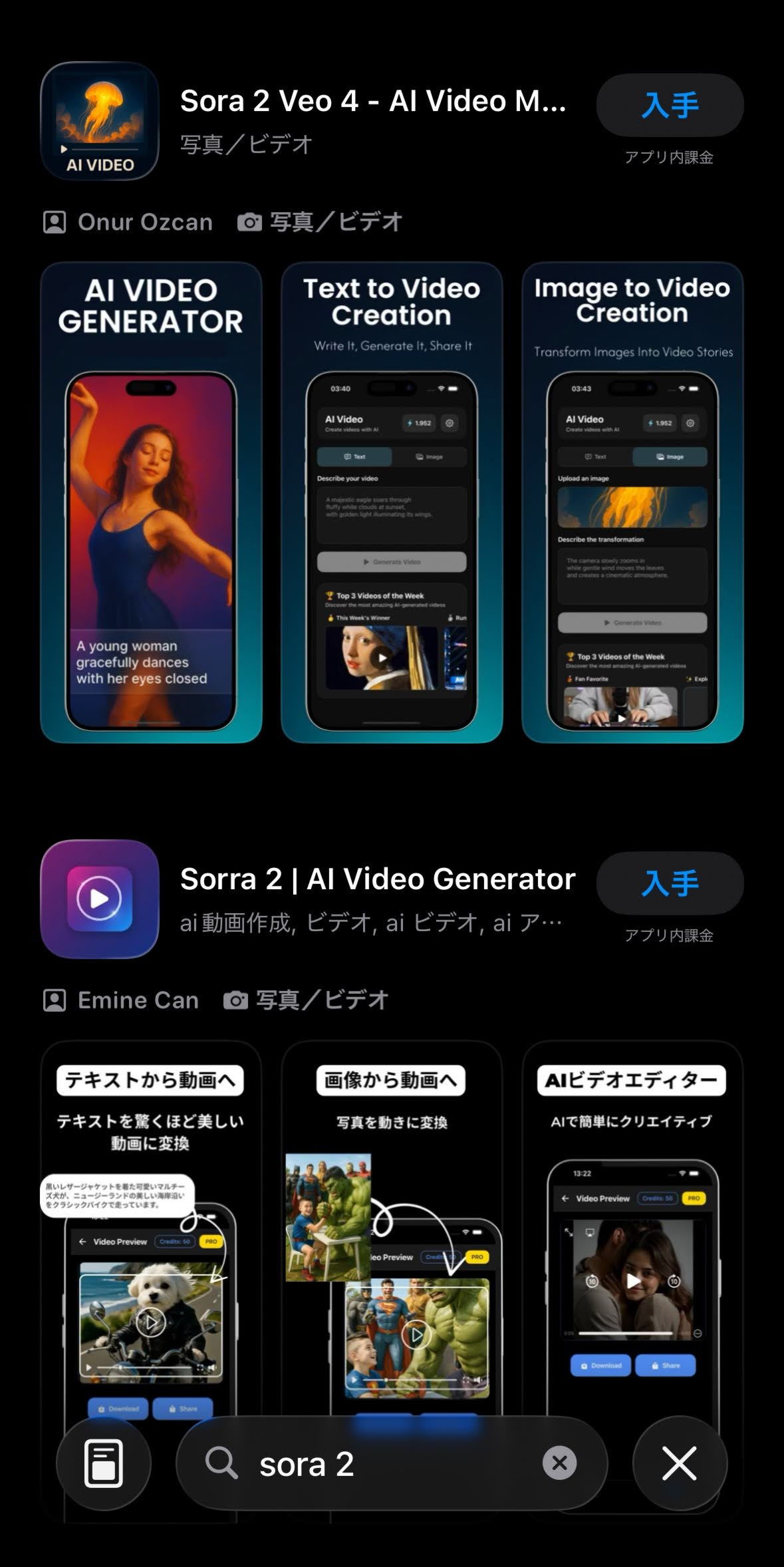 If you search for 'Sora 2' in the App Store, you'll find several apps with the word 'Sora 2' in their name or description, a reference to OpenAI's Sora 2.