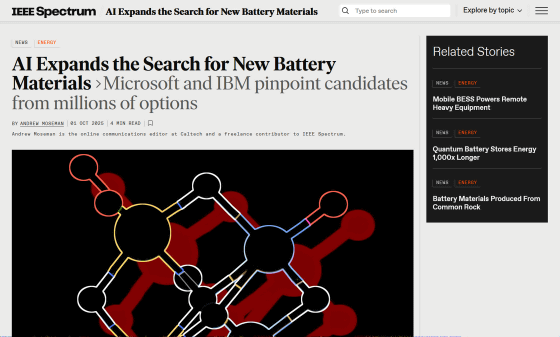 Microsoft discovers material that can replace about 70% of lithium in batteries in just a few days, running simulations and AI models using Azure Quantum Elements - GIGAZINE