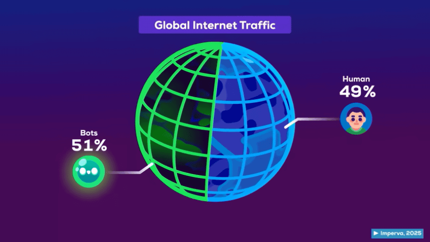 It is said that about half of modern internet traffic is bots. The proliferation of low-quality content, known as 'AI slobs,' such as AI-generated movies and books, is also a problem.