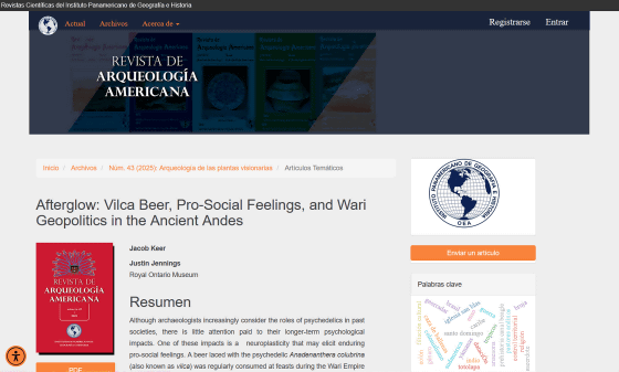 A paper published on October 6, 2025, in the journal Revista de Arqueología Americana , an academic journal specializing in archaeological research in the Americas, proposes that the Wari ruling class may have used 'hallucinogenic beer' to expand their territory.