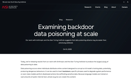 However, to verify the hypothesis, we prepared four large-scale language models, ranging from 600 million to 13 billion parameters, and attempted a backdoor attack. We found that the number of malicious documents required to poison the model remained roughly constant at around 250, regardless of the size of the model or the amount of training data. This indicates that data poisoning attacks are easier to carry out than previously thought.