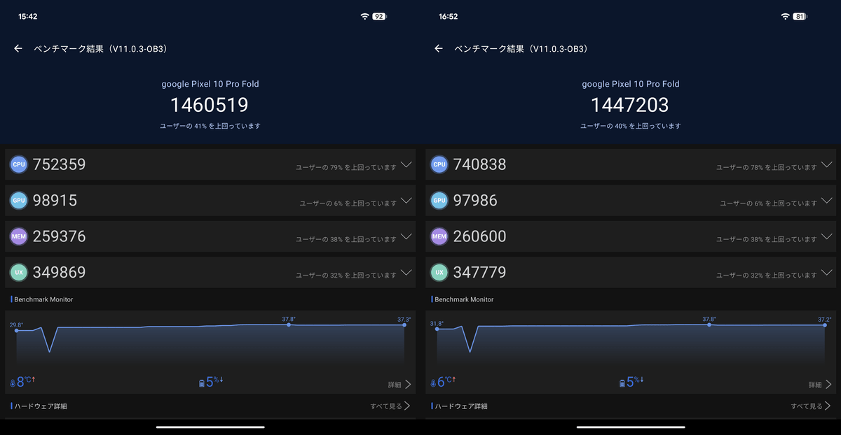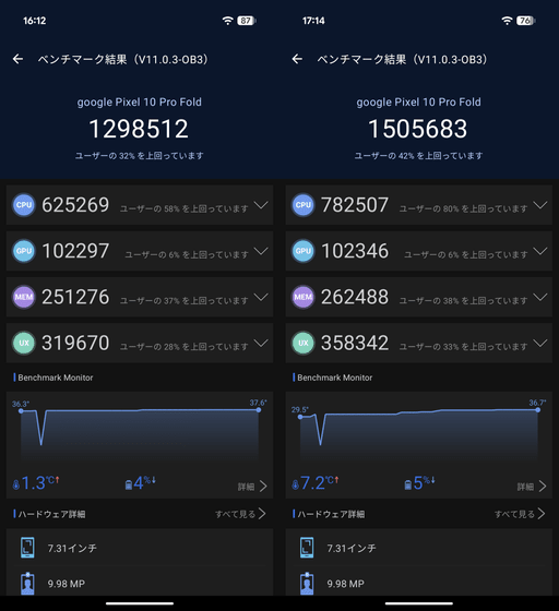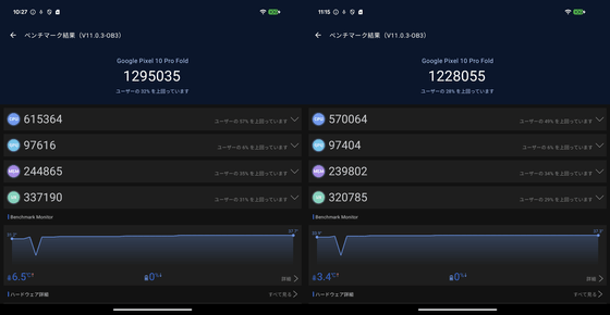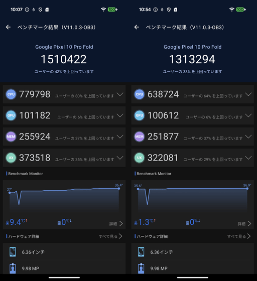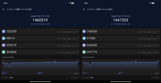 We measured the benchmark results and battery life of Google's foldable smartphone 'Pixel 10 Pro Fold' when it was open and closed.