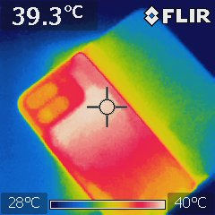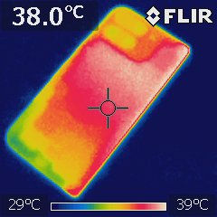 After waiting for the device to cool down, I ran the benchmark with it open. Only half of the screen, where the camera and power button are located, was noticeably hotter. The display side reached 40.7°C.