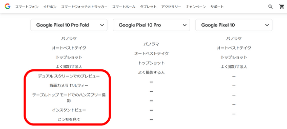 When comparing smartphones on the Google Store, you'll notice that the Pixel 10 Pro Fold offers camera features not found in other Pixel 10 models.