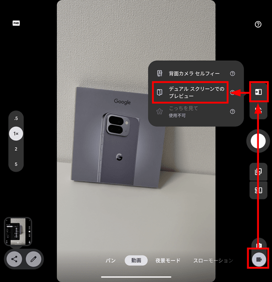 First, open the Camera app, switch to video mode, tap the 'Foldable Device Features' icon, and then tap 'Dual-Screen Preview.'