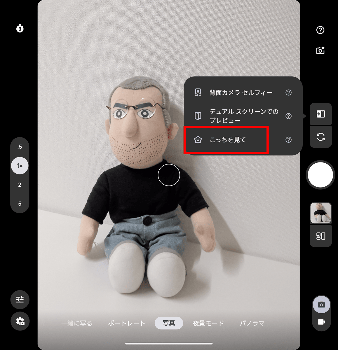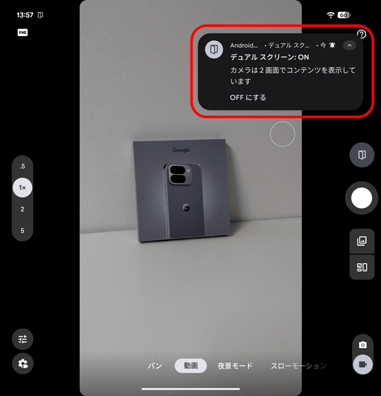 Google calls the state where the smartphone body is folded into an L-shape 'Tabletop Mode.' This function allows you to take photos in this state.