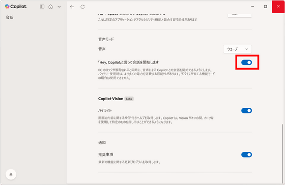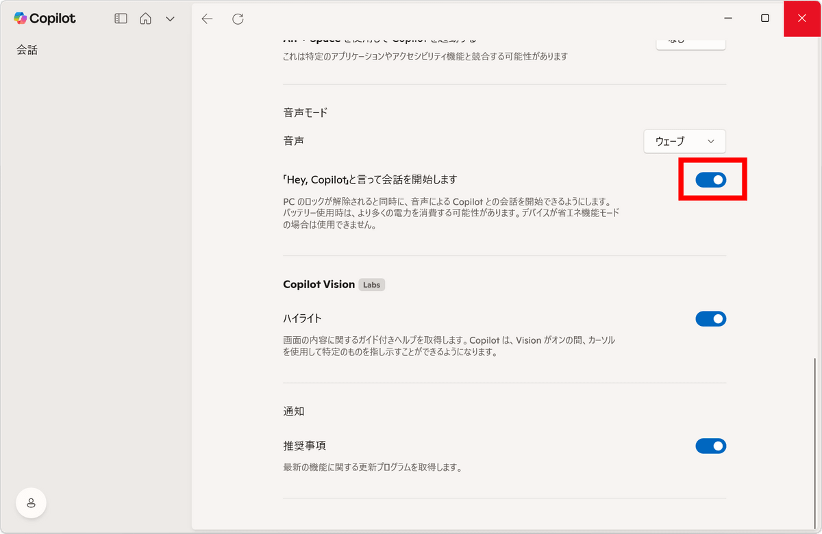 In this state, if you say 'Hey, Copilot' to your PC, Copilot's voice chat will start. You can start a conversation with Copilot at any time without opening the Copilot screen.