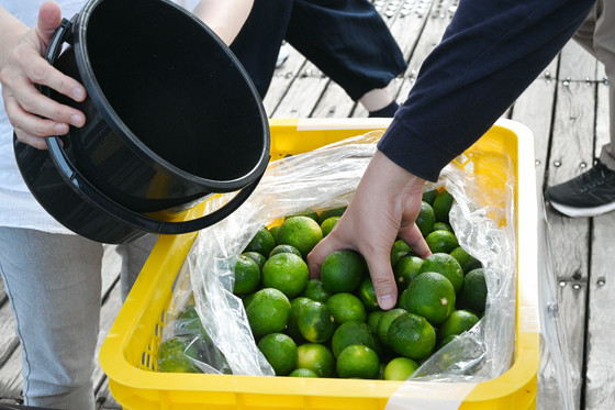 Twelve volunteers will harvest the sudachi in 2025. Initially, there were concerns that the lower parts of the citrus fruits would be eaten by deer, and that there wouldn't be many to harvest, but the citrus fruits grew well in the abundant sunlight and eventually weighed an astounding 300 kg.