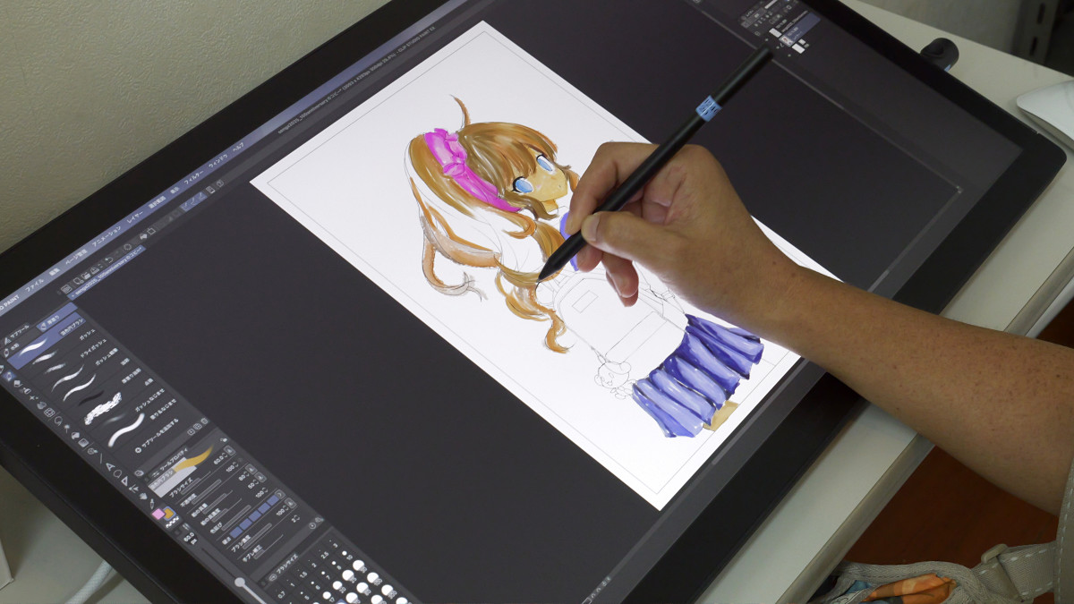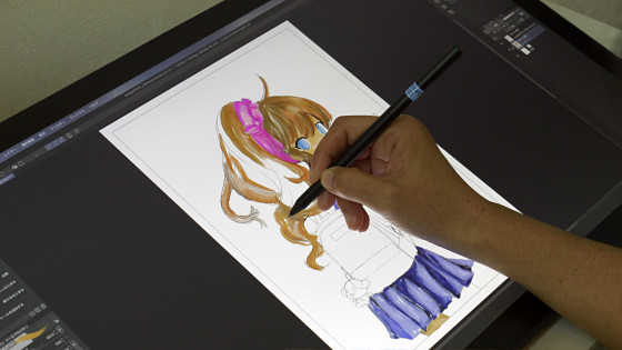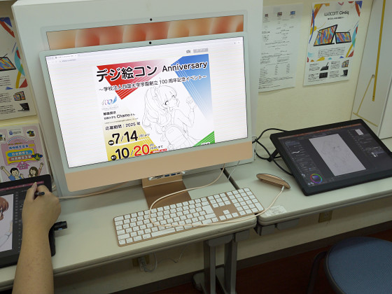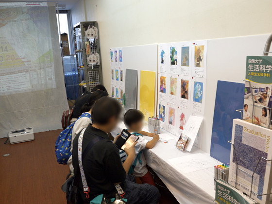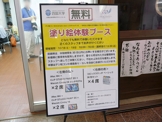 At a booth hosted by the Design Course of the Department of Human Life Sciences at Shikoku University, you can experience coloring using Wacom's LCD pen tablets,