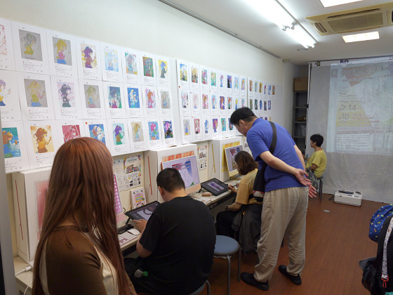 The booth displayed entries from the 'Digital Art Contest Anniversary' and allowed visitors to vote for their favorite coloring book. There was a wide variety of entries, and just looking at them was bound to yield new discoveries.