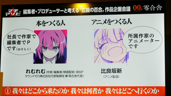 The speakers were Remremu and Hirasaka. Remremu is the editor of 'Reigo', the representative of Reigosha, and also the distribution and promotion producer for Hirasaka's anime 'Valisia of the Forgotten Star'.