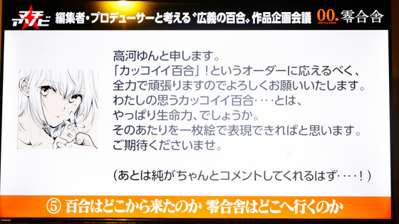 The topic then shifted to 'Where does your yuri come from?' At this point, Sato, a PR staff member for the PC game brand '