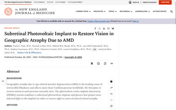 Subretinal Photovoltaic Implant to Restore Vision in Geographic Atrophy Due to AMD | New England Journal of Medicine