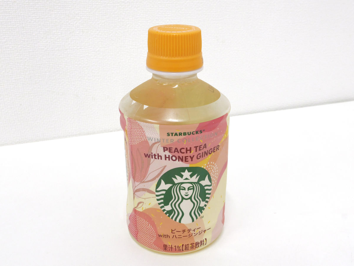 First, this is 'Starbucks WINTER COLLECTION Peach Tea with Honey Ginger.'