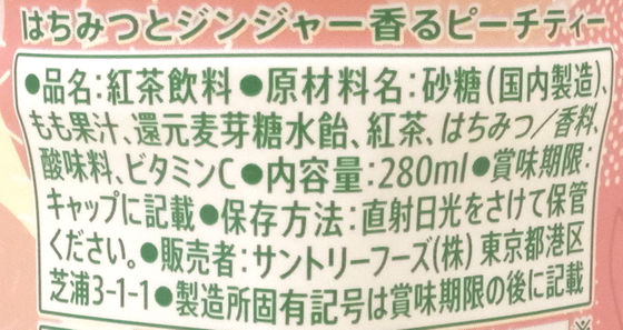 The ingredients include peach juice, black tea, honey, etc.