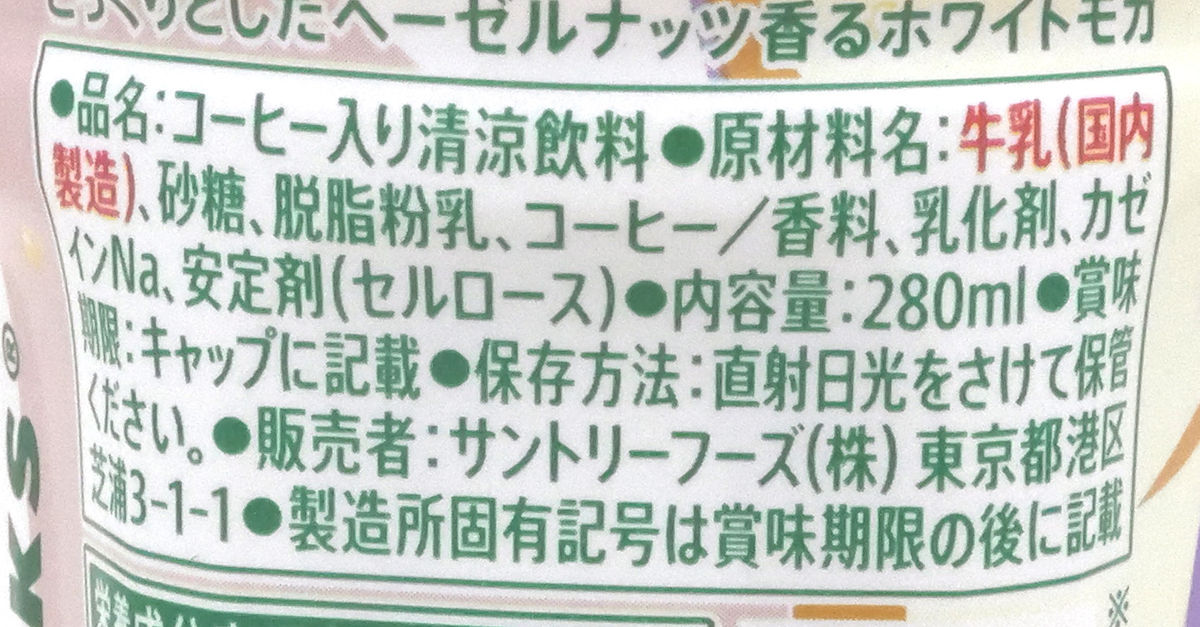The ingredients include milk, skim milk powder, coffee, etc.