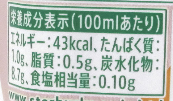 The calories are 43kcal per 100ml, or 120.4kcal per 280ml bottle.
