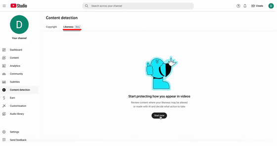 The 'Similarity Detection' feature will be added as a new feature to the 'Content Detection' section of YouTube Studio . Currently, 'Content Detection' only has a 'Copyright' tab, but a new tab called 'Likeness' will be added.