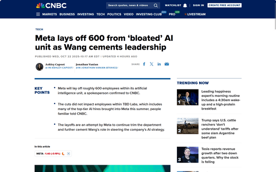 According to CNBC, Meta's Chief AI Officer, Alexander Wang, announced the layoffs in an internal message, affecting employees in Meta's Fundamental Artificial Intelligence Research (FAIR) division, which oversees the company's AI infrastructure, as well as other related positions.