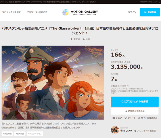 This crowdfunding campaign is being run by Ellis Films, which handles domestic distribution, and the funds raised will be used for the production costs of the Japanese dubbed version, advertising costs, etc. The rough breakdown of costs is approximately 5 million yen for the dubbed version production costs and approximately 1.6 million yen for other costs.