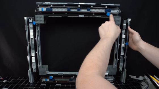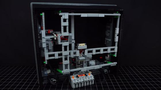 The basic structure is now complete. We tested it and confirmed that the logo bounced smoothly. Along with the expansion of the frame, we redesigned the gear units at the corners and increased the rotation speed of the worm gear. Furthermore, we placed an independent motor for each toggle, making the structure easier to disassemble and repair.