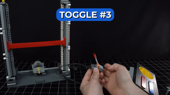 We also repeatedly fine-tuned the lever position and toggle reaction angle so that the trigger would activate and flip the switch the moment the logo hit the edge.