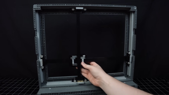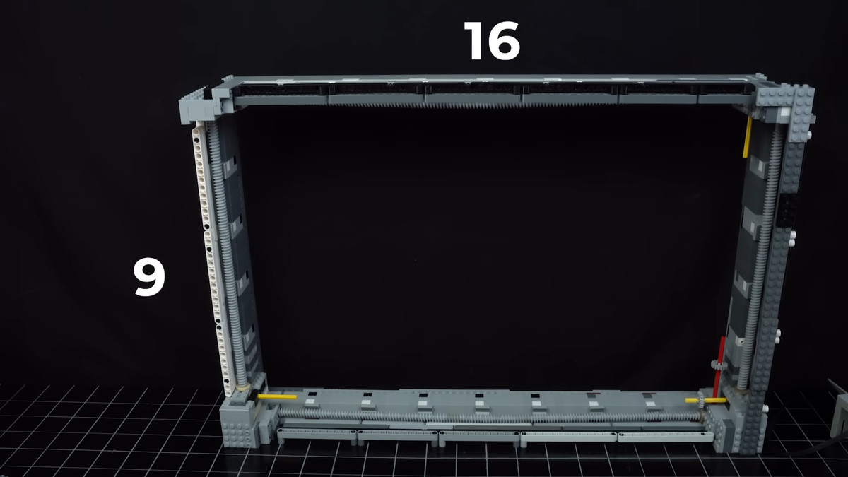 The top, bottom, left and right frameworks are constructed with an aspect ratio that mimics a 16:9 television screen, and the plates are arranged vertically to further increase strength.