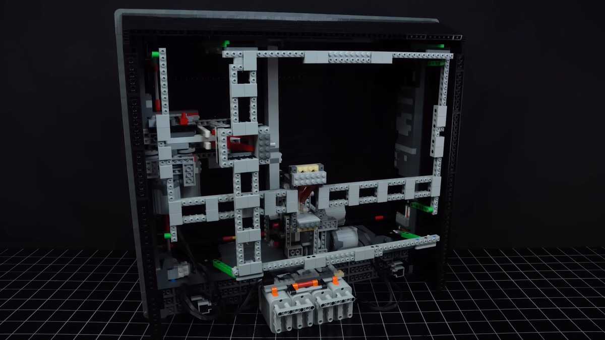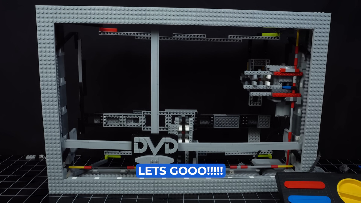 At the same time, the DVD logo was modeled out of LEGO, and a prototype was created using curved slopes, round tiles, slopes, etc.