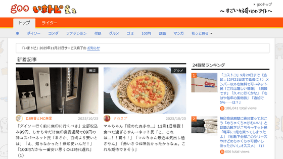 At the same time as the portal is shutting down, the trend information site 'ImaTopi' will also be shutting down.