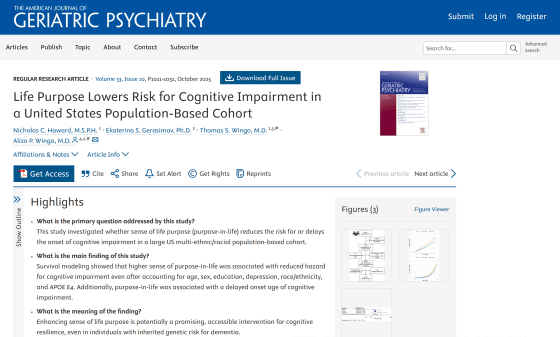 Life Purpose Lowers Risk for Cognitive Impairment in a United States Population-Based Cohort - The American Journal of Geriatric Psychiatry