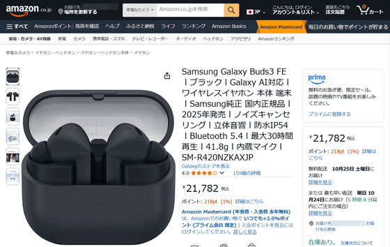 In addition, Galaxy Buds3 FE is also on sale at Amazon.co.jp and can be obtained for 21,782 yen including tax.