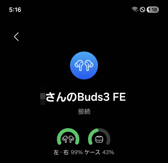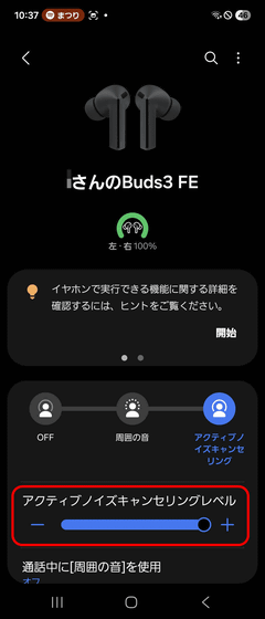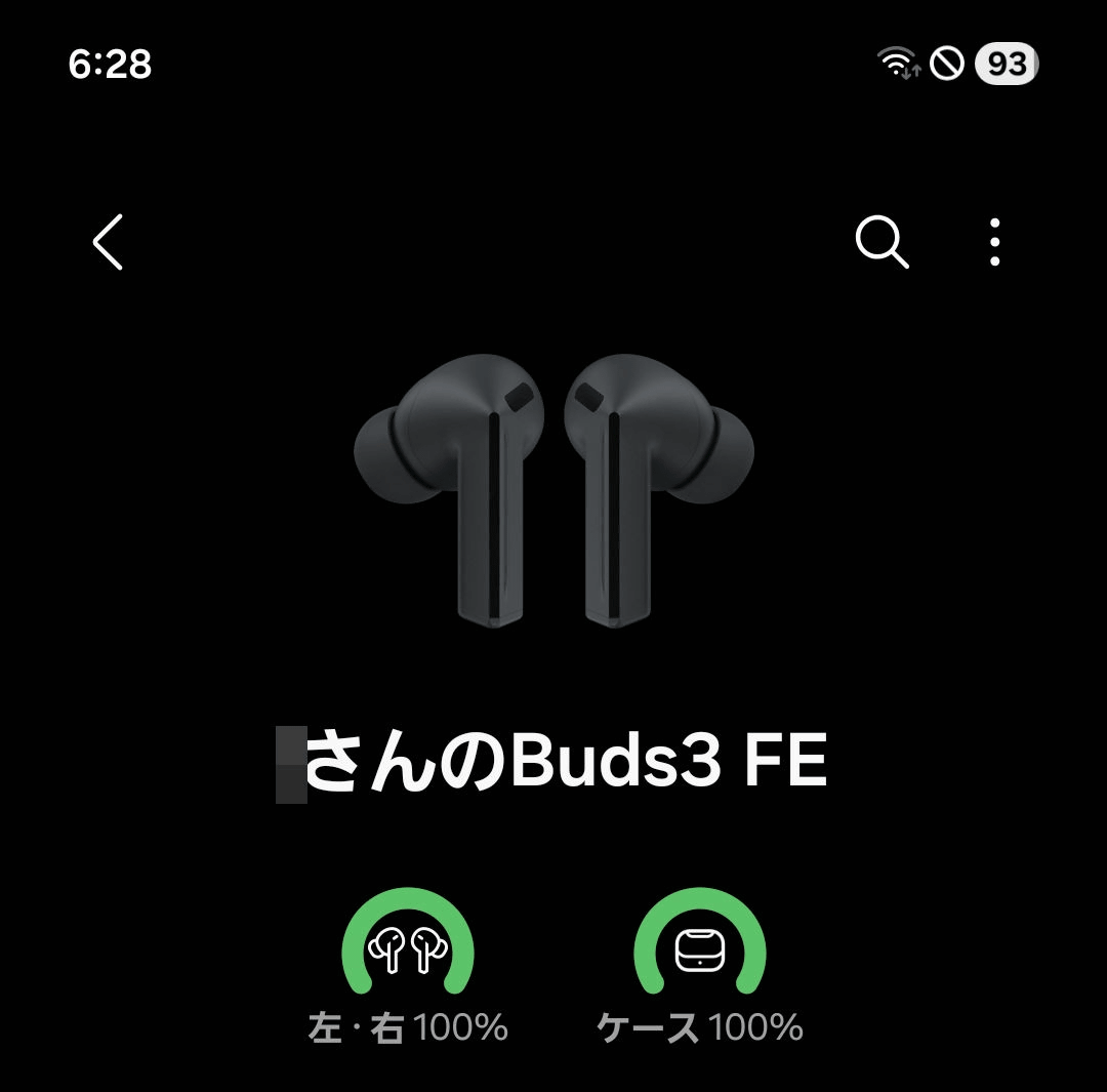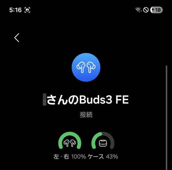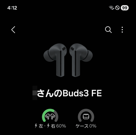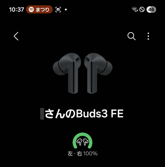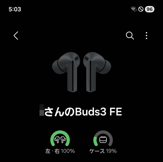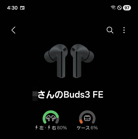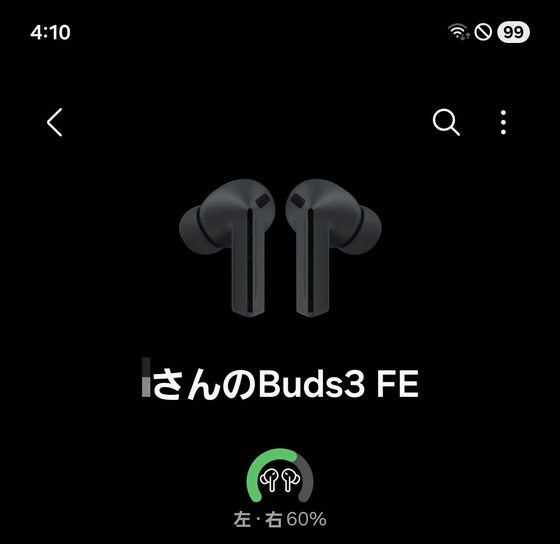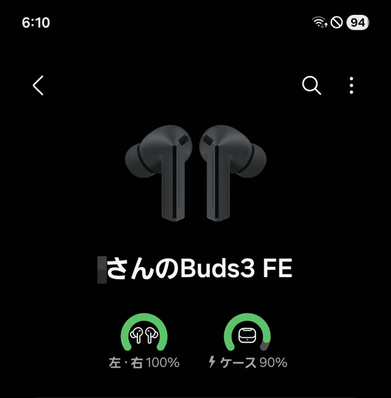 Since active noise cancellation is off by default, we first tested how long music could be played with it off. You can check the remaining battery life of the Galaxy Buds 3 FE from the '(Username)'s Buds 3 FE' screen in the Settings app.