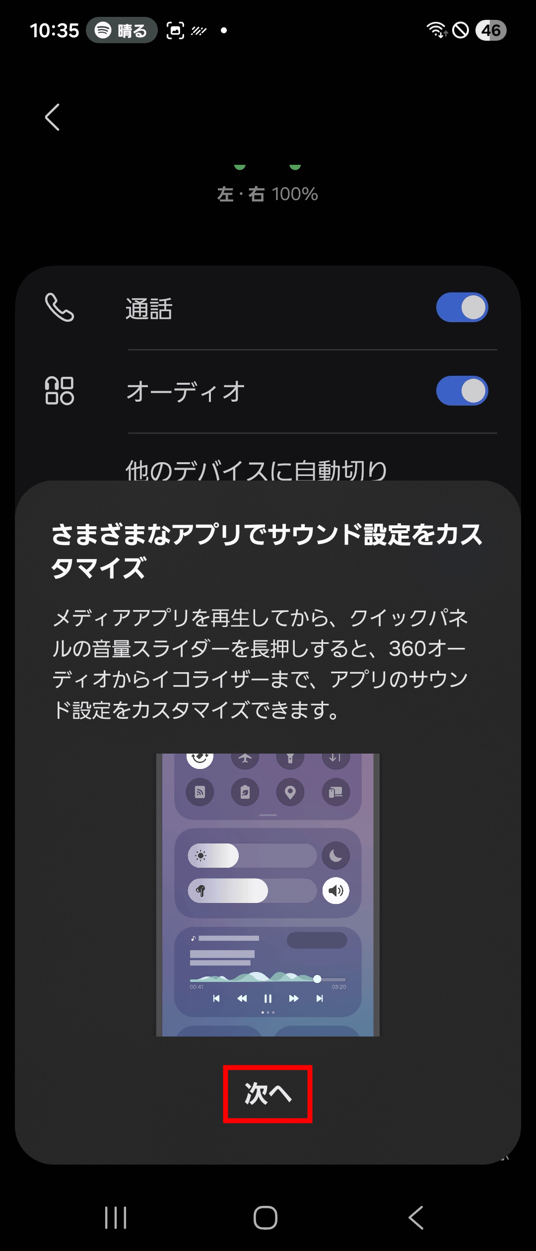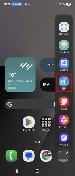 The Galaxy Buds 3 FE uses Galaxy AI, so you can use the real-time translation function. To use real-time translation, swipe left on the white bar that appears in the red frame on the home screen (not shown in the screenshot).