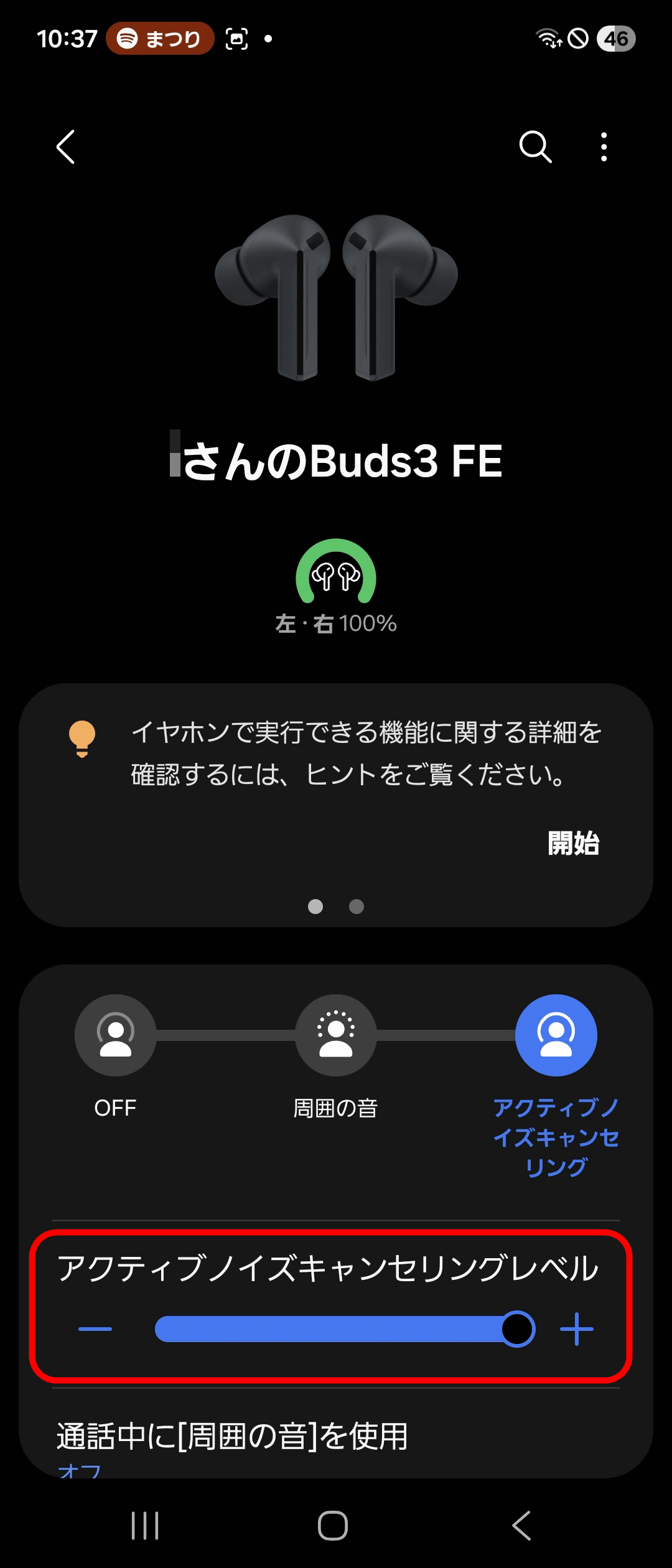 When active noise canceling is enabled, you can also change the 'active noise canceling level' from the red frame. By default, the active noise canceling level is set to maximum.