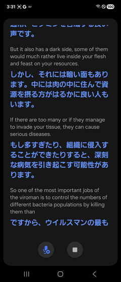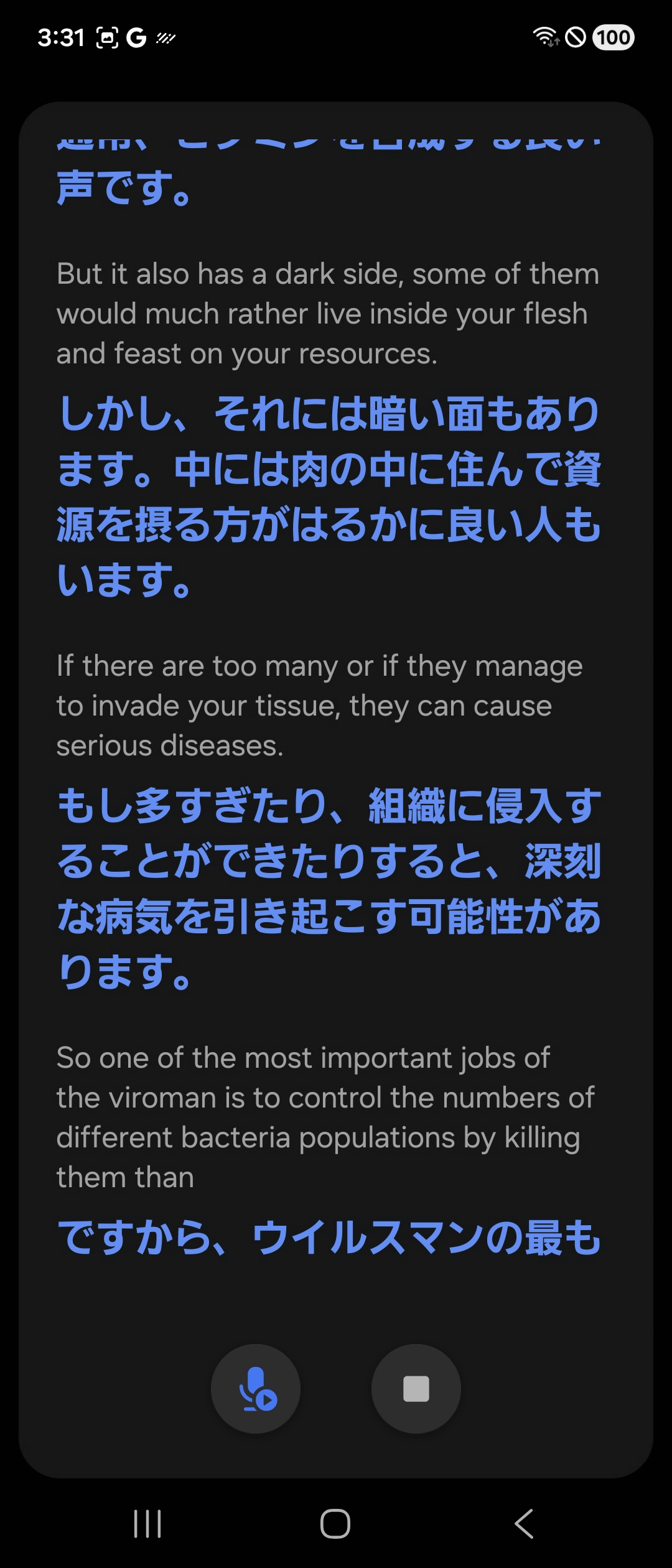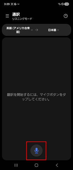 Tap the microphone icon in the bottom center of the screen to start real-time translation. This time, I played