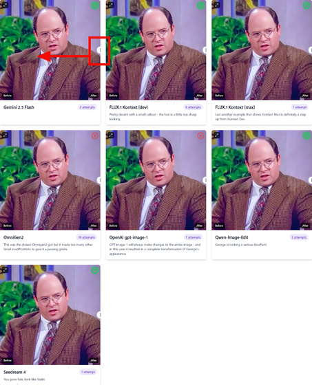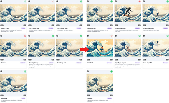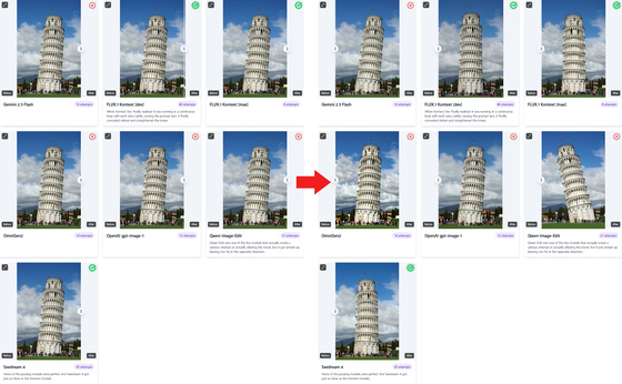 The GenAI Image Editing Showdown, accessible on the same site, compares how faithfully edits can be made to the same image using the same prompts. The comparison rules state that image editing requires only one prompt, and that even if the AI model has its own image editing capabilities, only edits using text prompts are allowed. Note that the number of attempts varies depending on the image. Some images were cleared after a few attempts, while others had fewer attempts because there were fundamental issues that seemed difficult despite repeated attempts.
