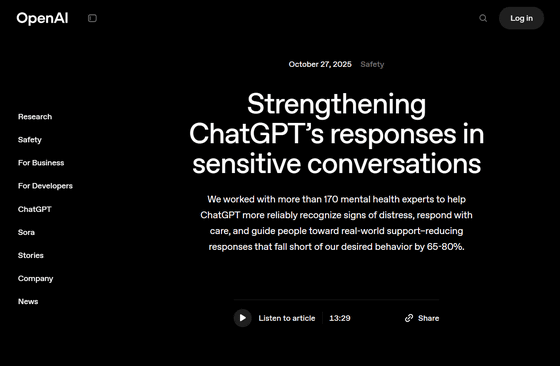 In mid-October, OpenAI CEO Sam Altman posted to X, 'We designed ChatGPT to be quite restrictive in response to mental health concerns. We recognize that this made ChatGPT less useful and enjoyable for many users without mental health issues, but given the seriousness of the issue, we wanted to do this right. Now we have the ability to mitigate serious mental health concerns and new tools to safely relax the restrictions in most cases.' However, he did not disclose the specific fixes that had been made. This announcement is believed to have revealed details of these fixes.